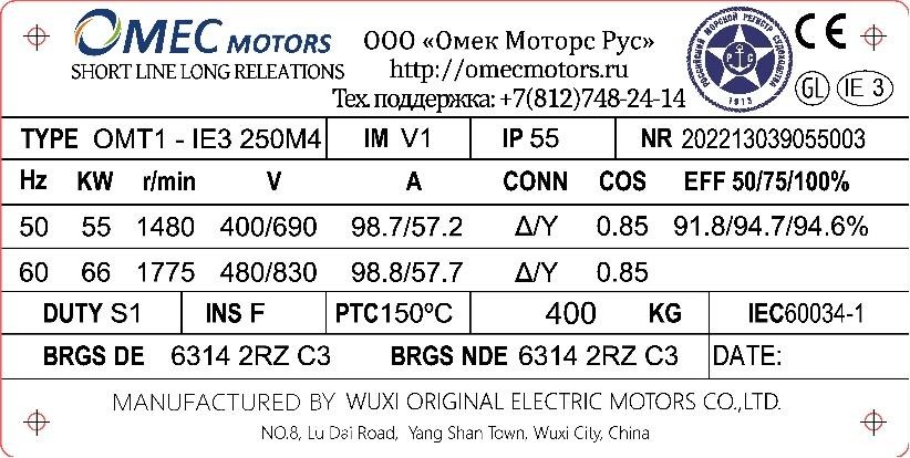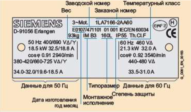класса эффективности и параметров двигателя (КПД, cosφ);